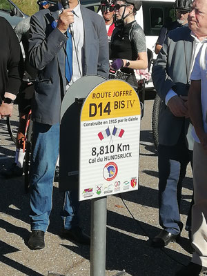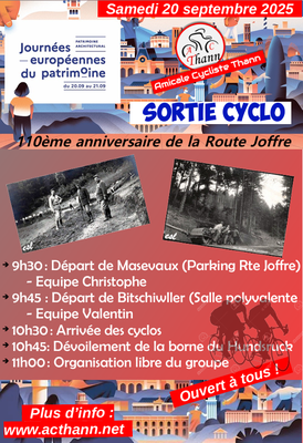 À l’invitation du Souvenir Français et dans le cadre des Journées du Patrimoine, l’Amicale Cycliste Thann a pris part, le samedi 20 septembre, à la célébration du 110e anniversaire de la construction de la route Joffre, reliant Masevaux à Bitschwiller-lès-Thann via le col du Hundsruck.