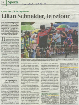 Depuis son retour à l'AC Thann le 1er novembre, Lilian Schneider enchaîne les performances remarquables sur les circuits de cyclo-cross. En cinq courses seulement, il a déjà décroché quatre podiums, dont deux victoires éclatantes, la dernière ce dimanche lors du 6ᵉ cyclo-cross de Soultz-sous-Forêts.