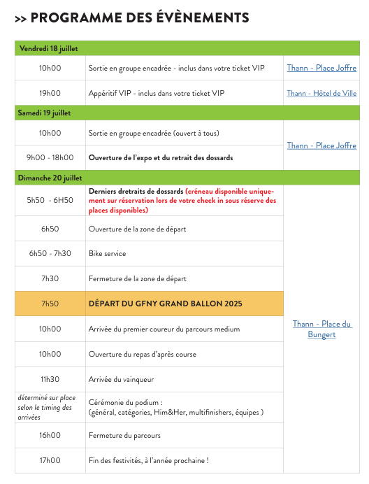 Au nom du Président de l’AC Thann, Thierry Bogenschutz, et de toute l'équipe d'organisation de la GFNY France, autour de son directeur Cédric Haas, nous vous remercions du fond du cœur pour votre dévouement et votre soutien indéfectible. Nous espérons vous retrouver l'année prochaine pour une nouvelle édition inoubliable de la Cyclosportive GFNY Grand-Ballon Thann !
